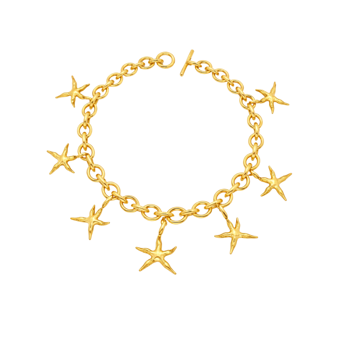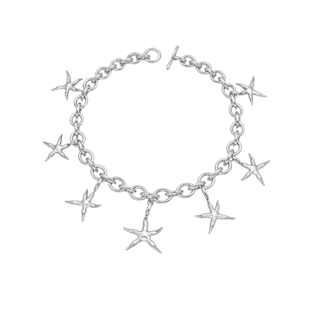 The Starfish Charm Bracelet is inspired by coastal beauty and ocean treasures. Its delicate charm adds a playful yet refined touch to your wrist, perfect for everyday wear or layering. A simple piece that captures relaxed, seaside elegance.