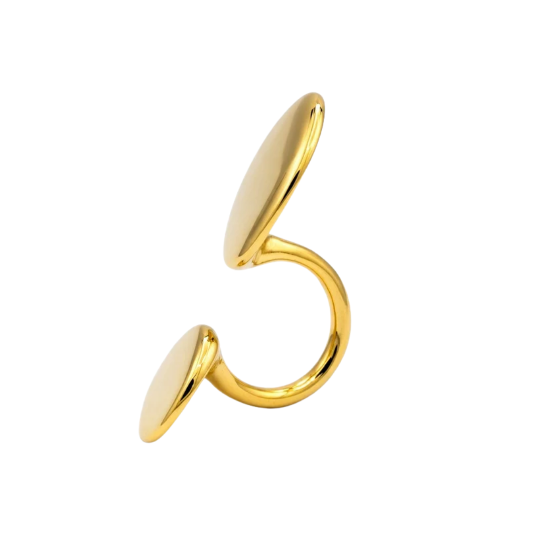 This is the ultimate addition to your statement rings collection. Featuring two asymmetrical ovals that float over your fingers, this is the perfect ring to spruce up your outfit. We recommend this ring be worn as a solo statement piece or stacked with other simpler rings for the ultimate combination.
