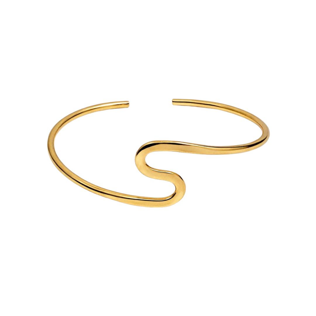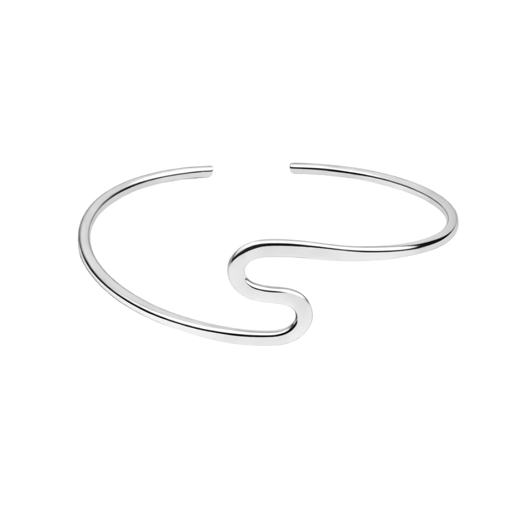 The Wave Cuff is inspired by gentle movement and rhythm. Its curved silhouette wraps naturally around the wrist, creating a soft yet striking presence. Perfect for minimal, elevated styling.